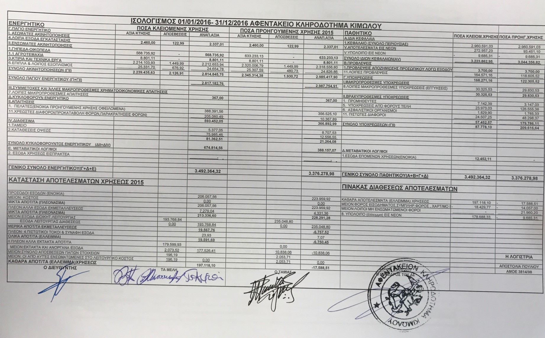 ΠΙΝΑΚΑΣ ΙΣΟΛΟΓΙΣΜΟΥ 2016