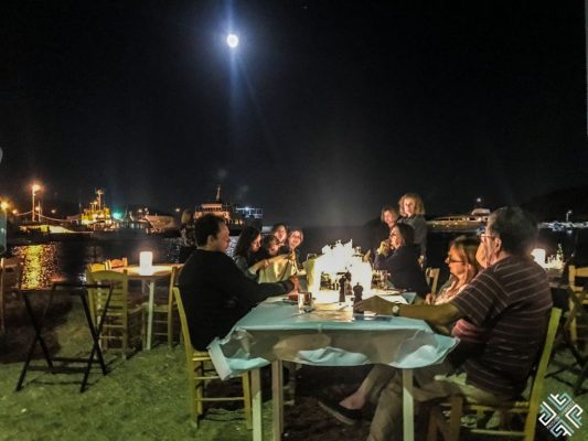 Το βράδυ, όπως βλέπουμε στο Travel Bloggers Greece – TBG (εδώ –στα αγγλικά) και στην Amber Charmei (εδώ –στα αγγλικά), οι TRAVEL BLOGGERS απόλαυσαν το δείπνο τους υπό το φως της πανσελήνου, επάνω στην παραλία της Ψάθης, στο εστιατόριο Το Κύμα “μποχωρακια”Κιμωλος.